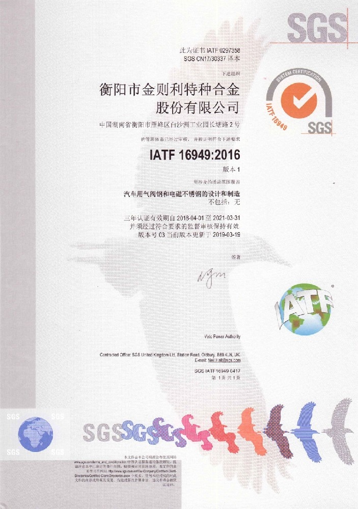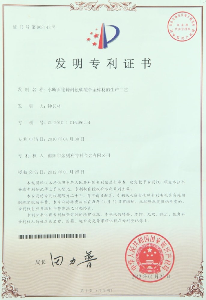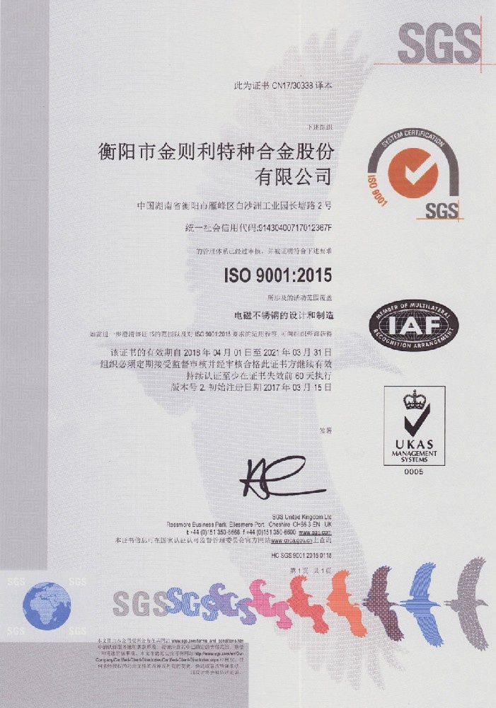 衡陽市金則利特種合金股份有限公司成立于一九九九年十二月,注冊資本人民幣兩千兩百萬元。注冊地址:衡陽市雁峰區(qū)白沙洲工業(yè)園長塘路2號。公司主營耐蝕軟磁合金,為湖南省高新技術(shù)企業(yè)。公司自成立以來,即致力于耐蝕軟磁合金的研發(fā)。 研制出的JL-31(00Cr13si2Pb)、JL-31B(00Cr13si2)、JL-31BS(00Cr13Si2S)、JL-37B(0Cr17Si2)、JL-37(0Cr17···